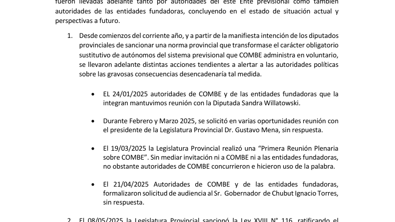 Queremos informar a nuestros asociados y asociadas que el correo electrónico 📧 asociados@combechubut.com.ar se encuentra momentáneamente fuera de servicio hasta nuevo aviso. 👉 Por cualquier consulta, les pedimos que se comuniquen al correo alternativo:📩 combesecretaria@gmail.como bien por mensaje...